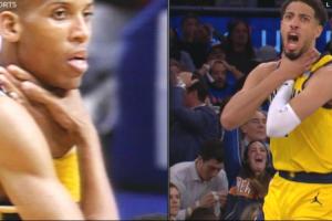😈致敬传奇!哈利伯顿绝平之后 模仿雷吉-米勒锁喉送给纽约!
