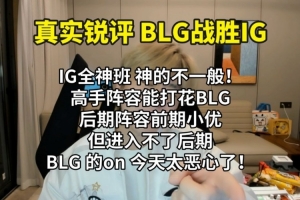 赛后B站up“真实电竞”发布视频锐评:IG全神班,神的不一般,高手阵容能打花BLG,后期阵容前期小优但进入不了后期,BLG的ON今天太恶心了。