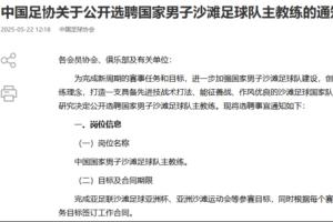 直播吧5月22日讯 中国足协发布公开选聘国家男子沙滩足球队主教练的通知,具体通告如下: