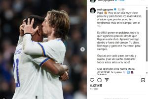 直播吧05月22日讯 今日莫德里奇官宣将在赛季末离队,罗德里戈社媒告别魔笛。