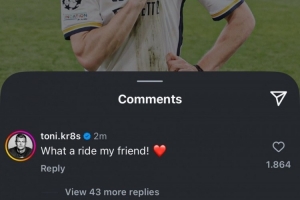 直播吧5月22日讯 不久前,莫德里奇的前皇马队友克罗斯在他的社交媒体下进行了留言。