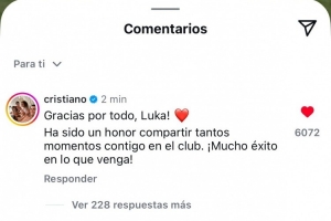 莫德里奇通过社交媒体自宣将在世俱杯后离开皇马,曾经在皇马与他共事多年的C罗也在社交媒体上回复了他。