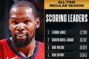 💥31000分!杜兰特后仰命中!历史第8位得分破3w1大关的传奇!