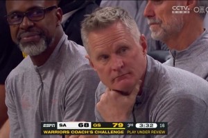 [科尔表情包] 表情太抢镜!!勇士罕见的挑战成功,主教练科尔惊出表情包!