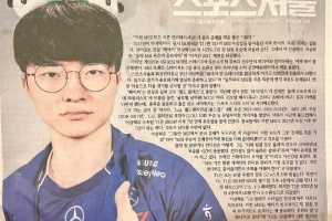 Faker头戴熊猫头饰 登上韩国报纸头版封面