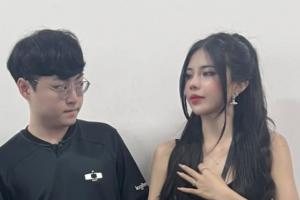 看迷糊了~越南超美女主持和Showmaker合照 许秀在旁边偷看麻咧!