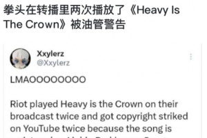 直播吧9月27日讯 近日S14主题曲《Heavy Is The Crown》饱受争议,有大批网友称林肯乐队在MV中的比重过大,有些喧宾夺主!但不料虚拟似乎照进了现实。拳头近日在油管转播比赛中两次播放《Heavy Is The Crown》,均被警告版权问题!