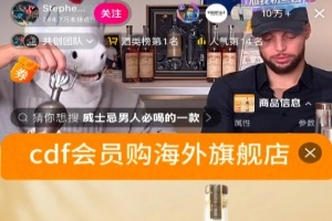 今日NBA勇士队球星斯蒂芬库里现身抖音官号直播间,与独角兽联动带货,商品橱窗页面显示,库里带货威士忌价格为625元/瓶;