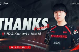 经选手与俱乐部双方友好协商,在充分尊重选手个人意愿的前提下,即日起JDG京东电子竞技俱乐部打野选手徐进赫(ID:Kanavi)正式断开连接。