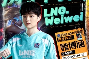 经过与选手的友好沟通,我们很荣幸地向大家宣布,苏州LNG九号电动电子竞技俱乐部英雄联盟分部选手魏博涵Weiwei 与俱乐部成功续约,同时,LNG.Weiwei将以队长之名,新的赛季与队伍继续并肩作战!