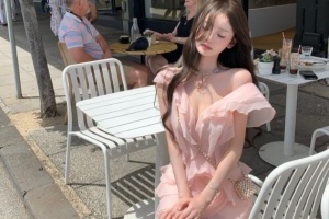 粉粉嫩嫩好可爱~王思聪女友懒懒晒照:惊现法国街头 抹胸短裙身材太过有料!