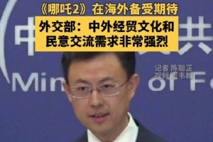 近日《哪吒2》也将在北美上映,引发轰动!有外媒记者在外交部例行记者会上提问:继《深海》之后,中国又有一部电影《哪吒2》将在北美市场上映,引发轰动。这部创下12亿美元票房纪录的影片在其他海外市场也备受期待。请问发言人,在全球背景下,这意味着什么?