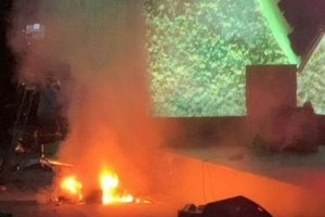 后续官方发文致歉,并表明火灾原因是氛围烟机电压异常导致小范围火情,目前已经进行灭火处理,无任何人员受伤,购买今日比赛门票的观众可申请退票。