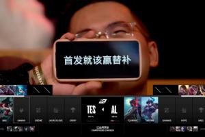 直播吧04月06日讯 昨日LPL组内赛,TES在终场Bo3以2:1战胜AL。在第二局游戏BP阶段,导播给到了现场举牌的观众镜头。这位观众举着一个“首发就该赢替补”的牌子,暗指本场Bo3双方打野Tarzan/Kanavi曾在LCK是首发/替补关系。