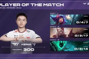这不给guma?Keria三局合砍0/10/38的战绩 拿下本场系列赛MVP