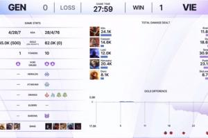 直播吧12月6日讯 Kespa杯GEN对阵VIE的比赛,GEN被VIE暴打,双方人头比4-28。