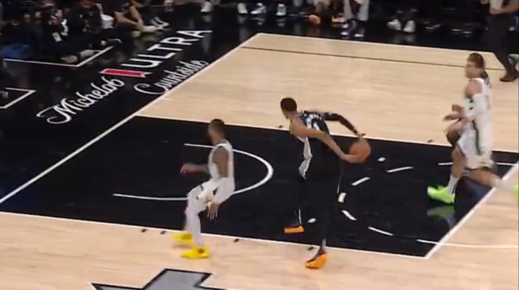 OMGGGGGGGG!文班抢断+背后绕腰过利拉德 双手隔扣大洛2+1!!