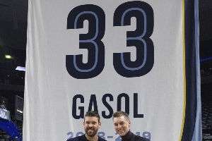 赛后,灰熊为球队名宿马克-加索尔举办了球衣退役仪式,“白熊”的33号球衣悬挂在联邦快递球馆上空,大加索尔、康利、盖伊、兰多夫和托尼-阿伦等灰熊旧将到场祝贺。