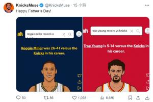 尼克斯的球迷账号晒出了他们最恨的两个人——雷吉-米勒和特雷-杨对阵尼克斯的战绩,并表示:“父亲节快乐哈~”