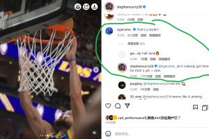 直播吧10月17日讯 昨日对湖人的比赛中,库里上演了一记滑翔大力上篮,之后他将这球晒到了自己的社媒上。