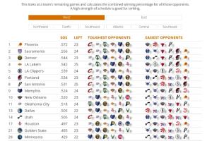 西部剩余赛程难度(最前面数字是赛程难度在联盟所有球队中的排名)