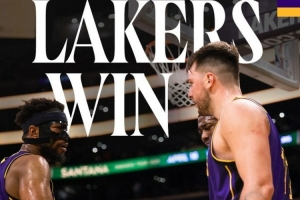 赛后,湖人官方晒出赢球海报,东契奇和古德温登上封面。