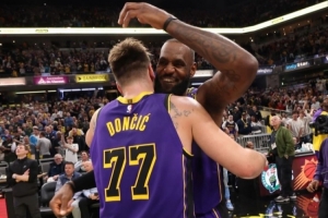 直播吧3月27日讯 今日,湖人120-119客场险胜步行者,结束三连败。湖人前锋詹姆斯完成补篮压哨绝杀。赛后,詹姆斯与东契奇在Instagram上进行互动。