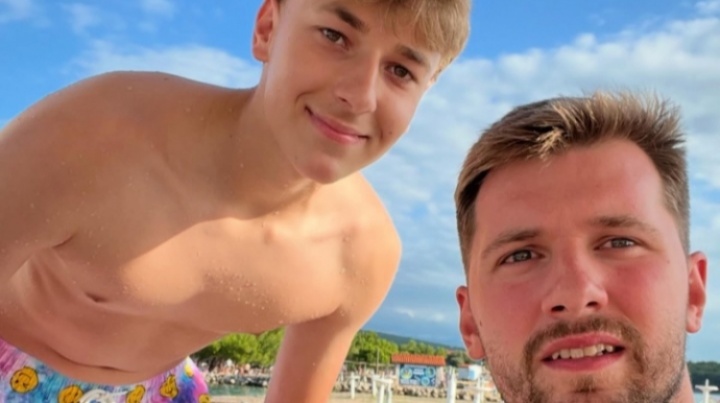 😎瘦了颜值也重回巅峰!东契奇近日在克罗地亚和一位粉丝合照