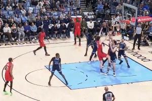 自信心来了!杨瀚森背打左手勾手命中再次单吃埃迪个人连得4分