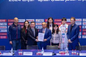 世界泳联主席侯赛因·阿尔-穆萨拉姆当天在新闻发布会上宣布,届时北京游泳世锦赛将举办游泳、跳水、花样游泳、水球、公开水域游泳和高台跳水共6个大项的比赛。
