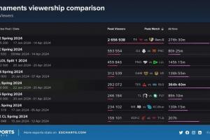直播吧4月23日讯 外媒数据统计媒体Esports Charts统计了春季赛最受欢迎的LOL联赛。