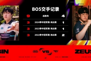 两队上单选手Bin和Zeus在BO5的交手记录中,Bin大场全胜!