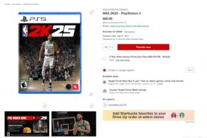 直播吧7月11日讯 国外购物网站target已上线《NBA 2K25》预购页面,同时也展示了游戏封面和游戏截图。页面还显示游戏将于2024年9月6号正式发售。售价69.99美元。