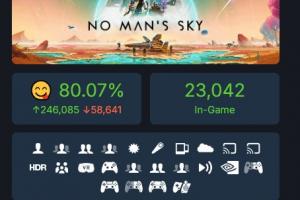 近日据数据统计网站SteamDB显示,《无人深空》当前在Steam平台的总好评率已经超过了80%,达到了80.07%,目前游戏近30天的好评率为93%。
