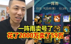 DNF大主播旭旭宝宝近日在直播里聊到,知名玩家主播“一阵雨”卖掉了自己跨2的账号,该账号花费高达2000万,最后出售价格为59万;
