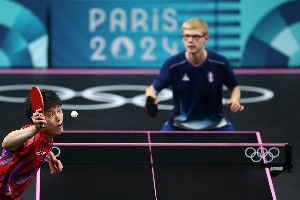 第二场是单打,小勒布伦在决胜局(第5局)中7-10落后,但是连赢5球逆转击败了张本智和,法国男团大比分2-0领先。