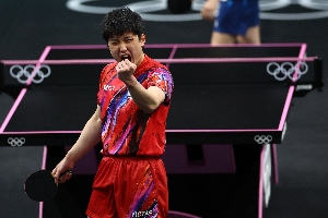 随后张本智和再度出场,单打对阵西蒙-高茨。第四局,张本智和在10-8领先的情况一度被高茨连追3分,但最后他还是以14-12获胜。张本智和3-1击败高茨,为日本将大比分扳成2-2,双方进入决胜盘。