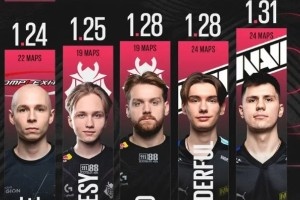 ZywOo由于地图数量不足未能上榜(13张),donk一共打了14张地图,拿到1.24的Rating。