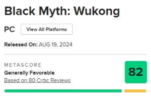 直播吧09月02日讯 根据评分网站MC最新数据,目前《#黑神话悟空# 》的媒体评分已从此前的81分回涨至82分,共有80家媒体参与评分,其中好评61条,中评12条,没有差评,有5家媒体给出满分,而打出的最低分为60分,其中就包括因为游戏缺乏DEI而打低分的Screen Rant等媒体。