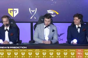 直播吧09月08日讯 LCK夏季总决赛GEN vs HLE进行中,赛前LCK解说预测本场比赛,仅1人看好HLE,其余人看好GEN夺冠。