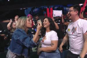 直播吧9月28日讯 S14全球总决赛入围赛PNG击败VKE晋级下一轮,保留晋级S14正赛机会,巴西主场演播厅粉丝,直接上演了求婚环节,并热情拥吻。