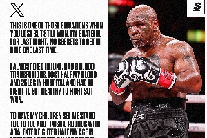 泰森在刚刚更新了社媒,谈到比赛和自己的身体状况:“这是那种你输了但也赢了的比赛,我很感谢这一夜,最后一次登台,我没有遗憾了。