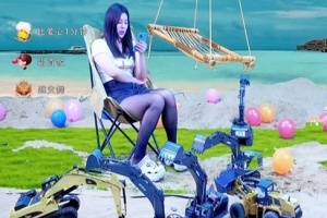 太过分咧!新型直播出现:用户操作挖掘机行动 黑丝美女主播被摸腿气得当场大叫