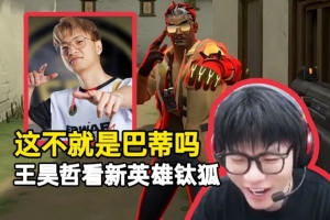 直播吧1月7日讯 BLG无畏契约分部明星选手王昊哲直播看《无畏契约》新英雄直言:这钛狐不就是nobody吗?拿了冠军真不一样,新英雄都照他做的!