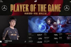 Tangyuan打出4/0/7战绩,斩获RNG对阵FPX第三局MVP
