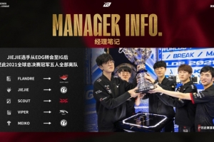 Jiejie选手从EDG转会至IG后,至此2021全球总决赛冠军五人全部离队;
