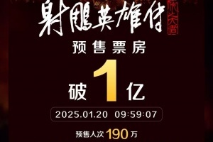 据灯塔专业版实时数据,截至1月20日9时59分,影片《射雕英雄传:侠之大者》预售总票房突破1亿,超过《唐人街探案3》,成为中国影史春节档预售最快破亿影片。