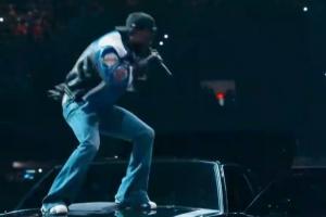 美国嘻哈巨星肯德里克-拉马尔在中场带来表演,R&B天后SZA进行了助演。肯德里克-拉马尔演唱了HUMBLE.和DNA.等名曲。值得一提的是,他还演唱了去年他和德雷克(drake)的diss大战中的绝杀diss曲——NOT LIKE US。