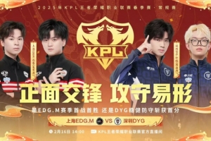 直播吧2月16日讯 2025KPL春季赛今日第一场比赛是由深圳DYG对阵到上海EDG.M!