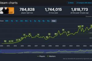 据SteamDB发布的数据显示,截止昨日下午,《反恐精英2》24小时的玩家峰值数达到了1744015人,这一数字是自2024年12月以来《反恐精英2》24小时玩家峰值的新纪录。